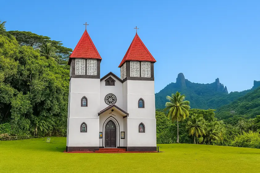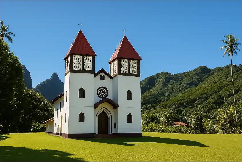 Le village possède également une petite merveille architecturale : l’église de la Sainte-Famille, noyée dans un écrin de verdure, qui apporte un charme authentique et paisible au cœur de Haapiti 🌺. Se promener dans ses ruelles tranquilles permet de ressentir l’atmosphère chaleureuse et intime du village, loin des zones touristiques plus fréquentées.